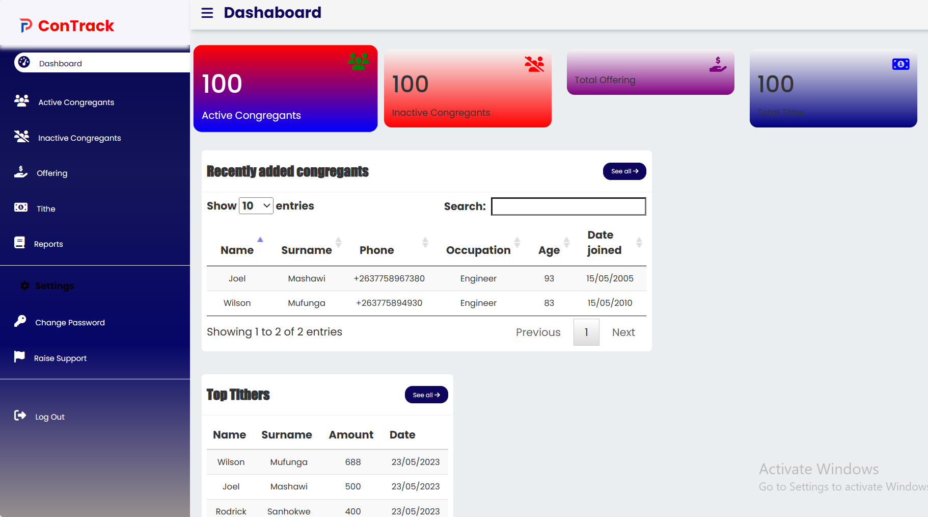 Contrack is a church management system that was initially developed to automate a church's day to day tasks.